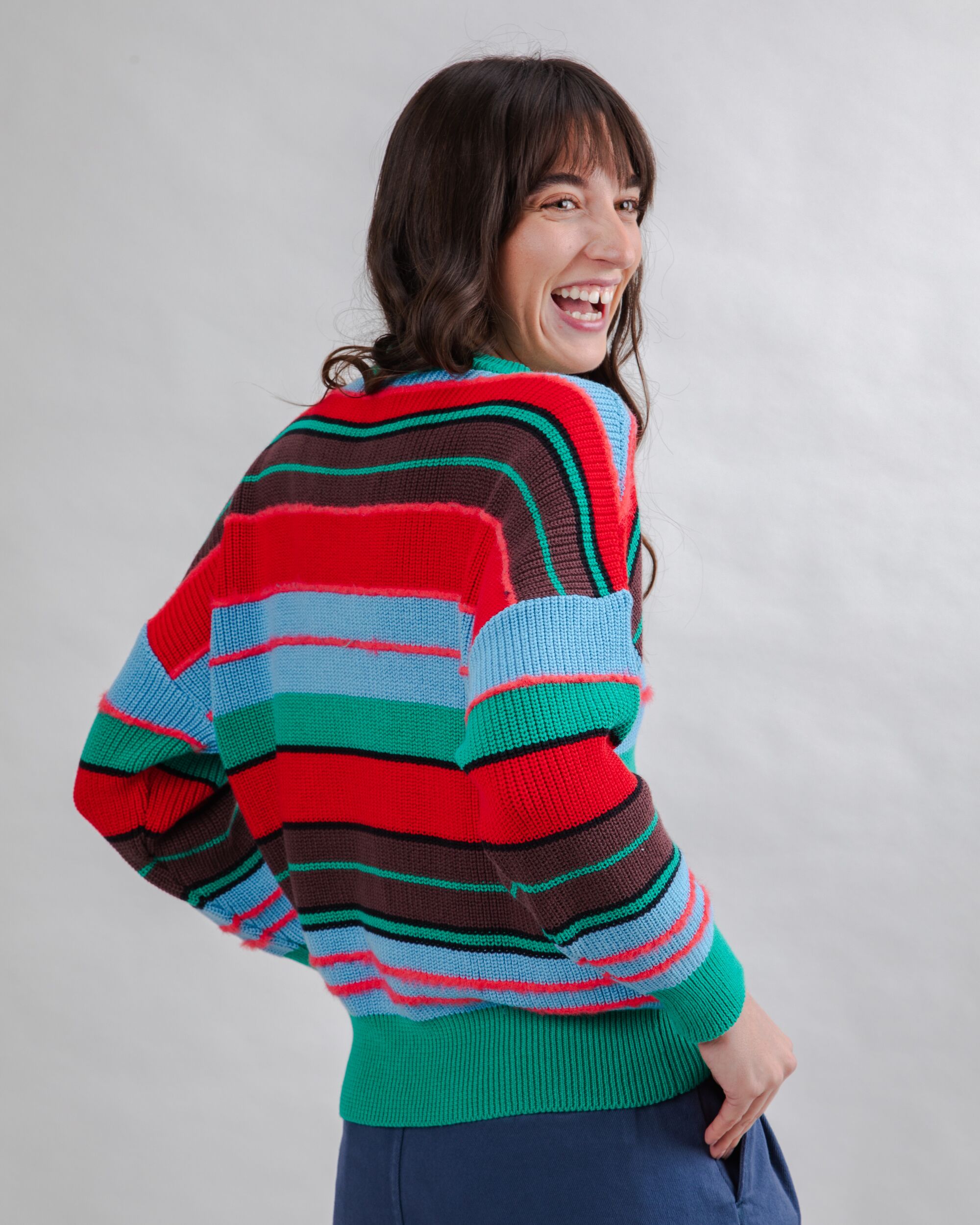 Brighten up your wardrobe with the Multistriped Sweater Batwing. Its soft organic cotton fabric and loose, flowing shape wrap you in cozy color and effortless charm—ideal for creative mornings or casual gatherings. Sustainability meets joyful style in one versatile piece.
