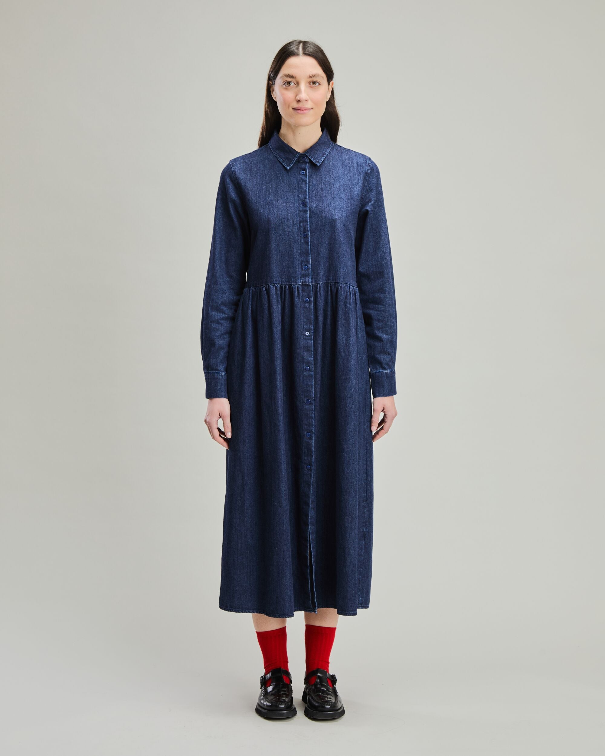 Slub Denim Straight Midi Dress