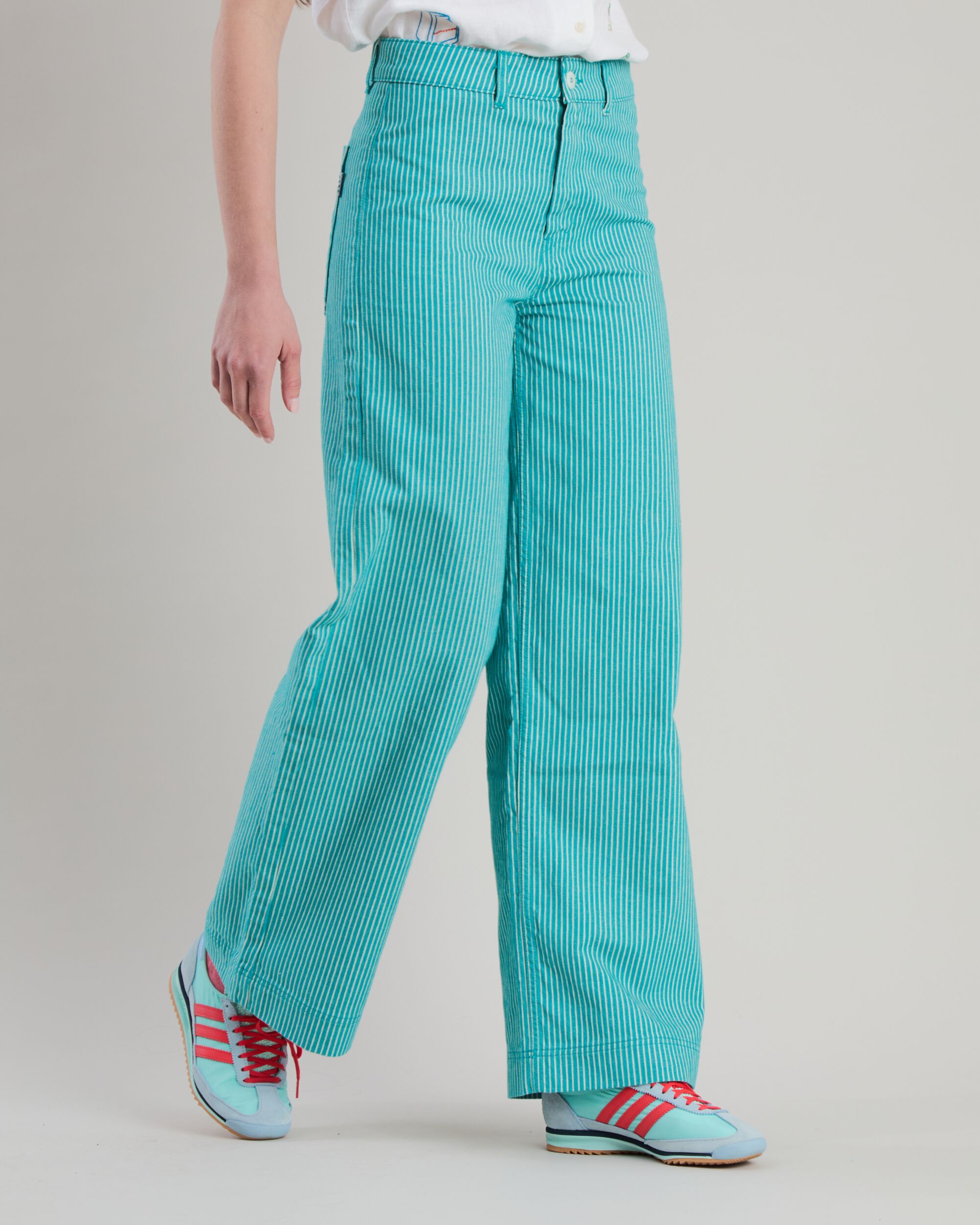 The green Denim Stripes Straight Leg Pants deliver a relaxed, everyday fit with a straight leg silhouette and a distinctive striped denim look. Easy to style and comfortable for all day wear, they work with simple tops and trainers for casual plans, or with a shirt for a cleaner outfit.